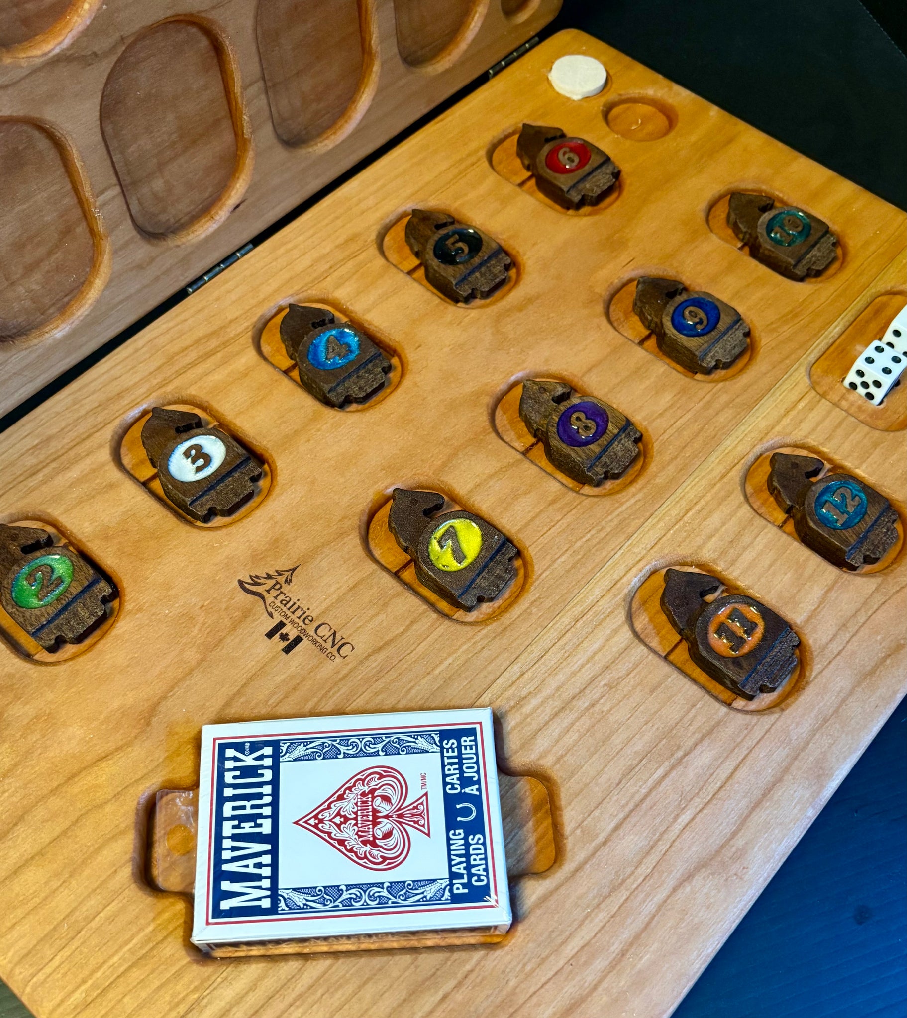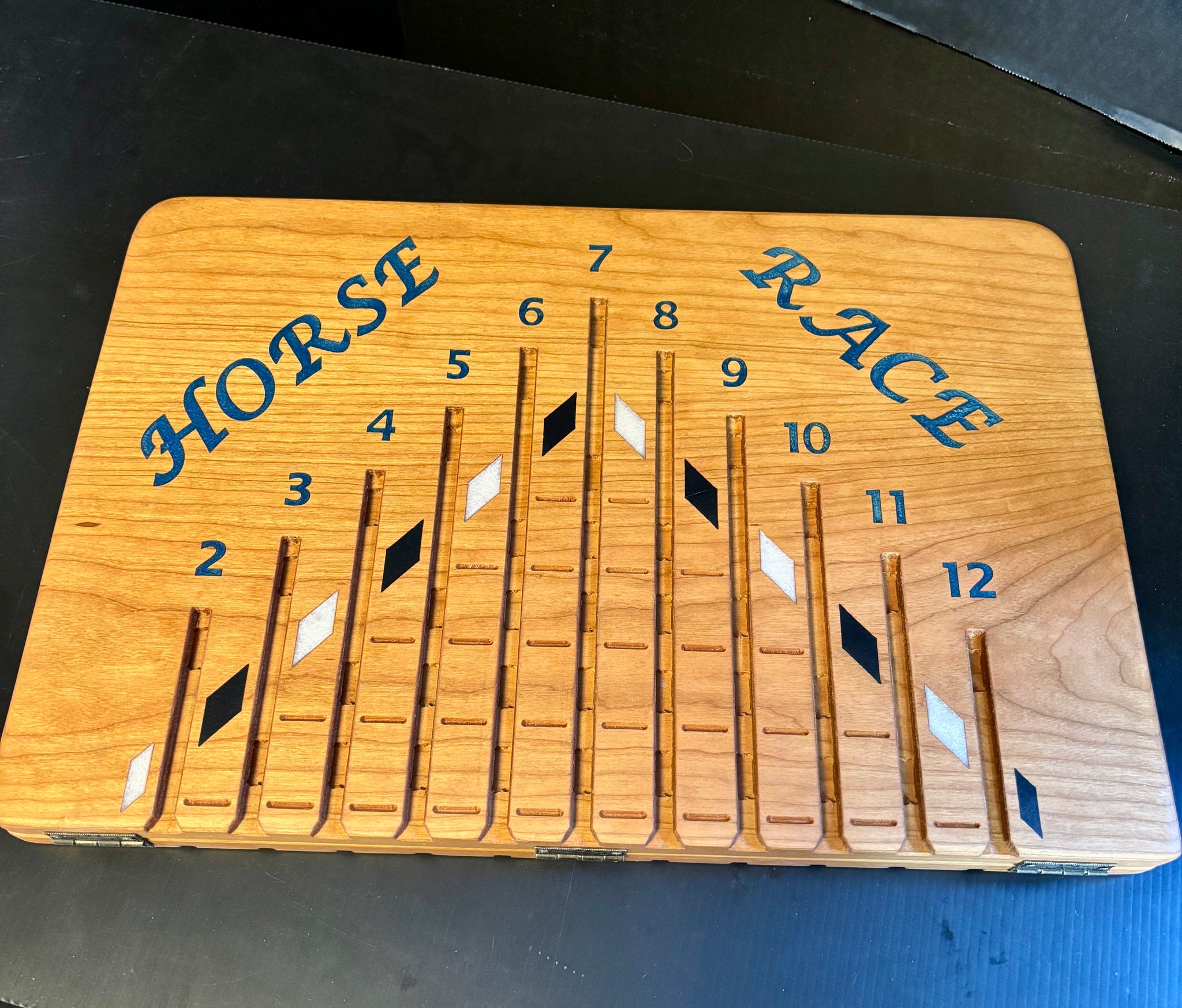 - all horses, cards and dice have a spot inside the game board